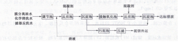 濃縮水處理工藝可以采用混凝沉淀+接觸氧化的處理工藝,其處理流程圖見圖1-1